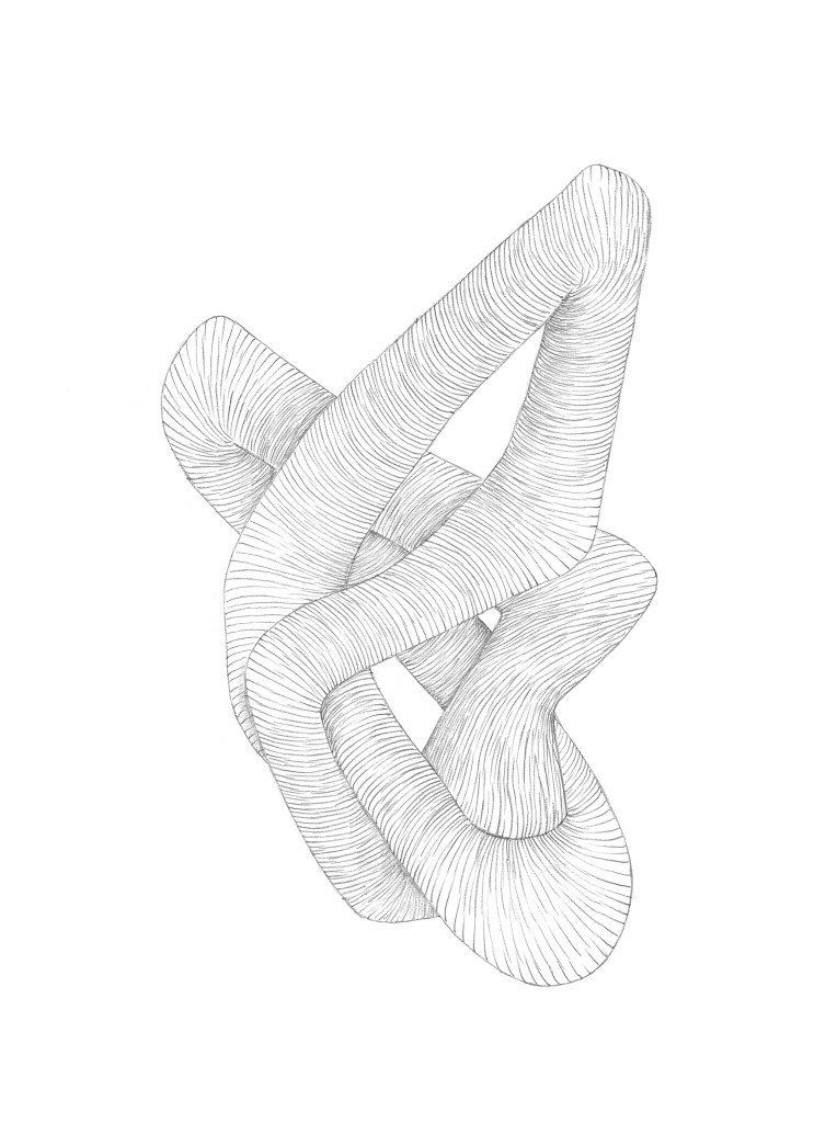 L’exposition Contorsions a été conçue et produite dans le cadre d’une résidence de trois mois à La Tohu, à l’été 2022. Faisant suite à une première expérience au sein des 7 Doigts de la main en février, Onira Lussier poursuit ici sa recherche autour des arts circassiens. Provenant elle-même du milieu des arts vivants, elle construit, par le dessin, des formes organiques dont la technique repose sur une grande sensibilité au corps. Fascinée par la discipline physique (ou corporelle) à laquelle se livrent les athlètes du cirque, l’artiste y voit un parallèle direct avec son travail très minutieux du dessin. De la répétition et de la maîtrise naît la création. Depuis quelques années, sa démarche l’a menée à aborder la trace du dessin de manière sculpturale, formant, par la ligne hachurée, des matrices qui par la suite peuvent être récupérées pour une future composition, à l’aide d’outils numériques.